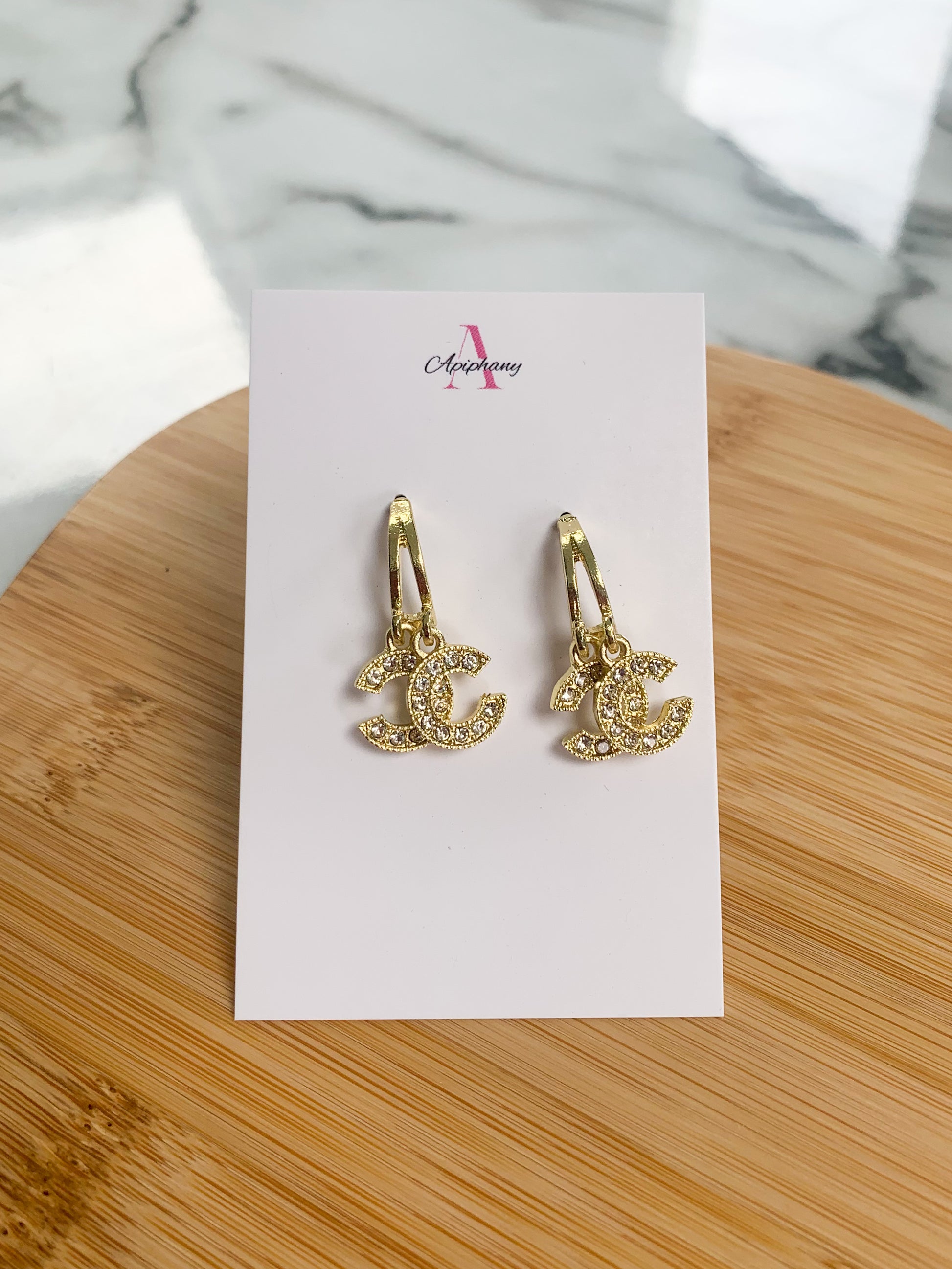 Gold hoops with diamond charm