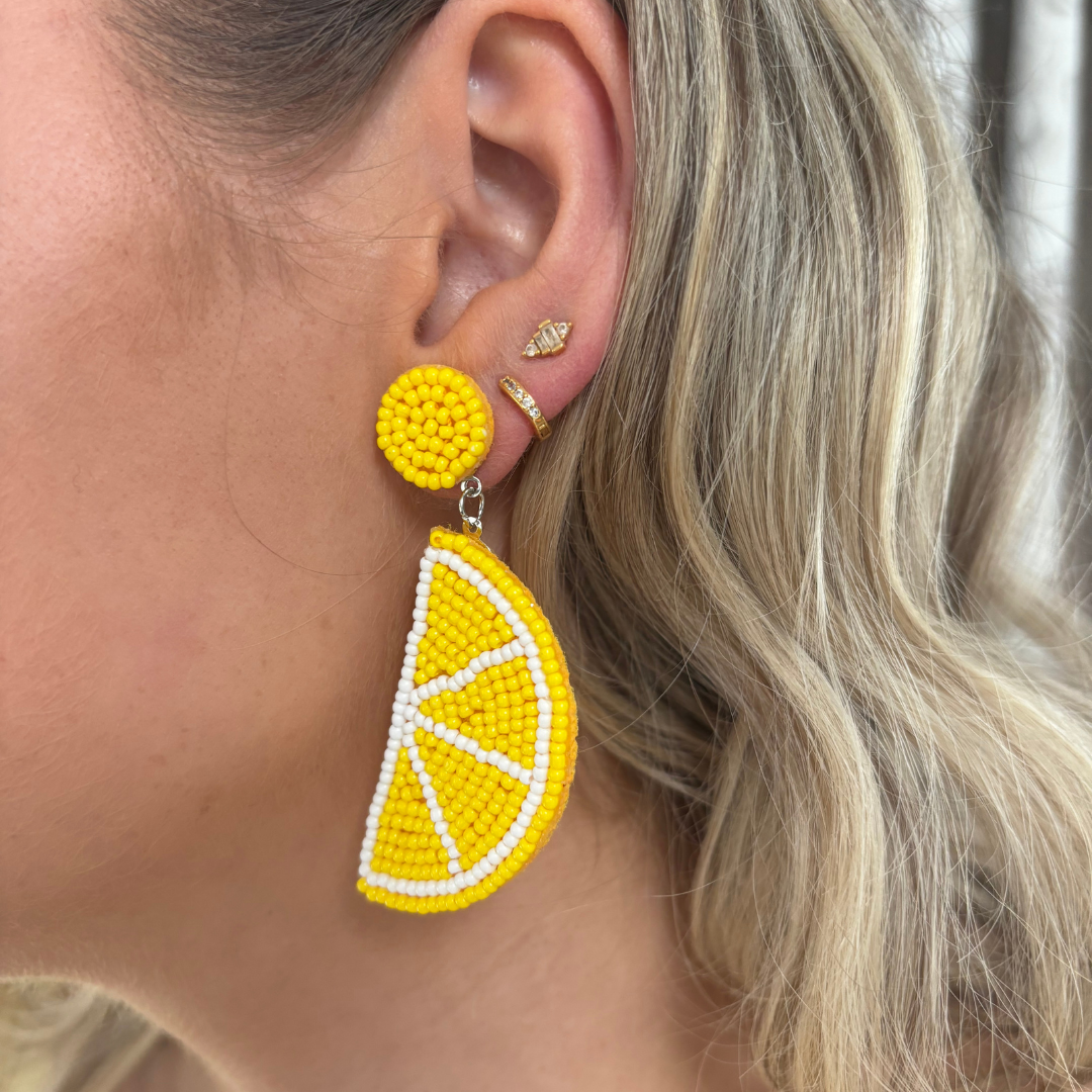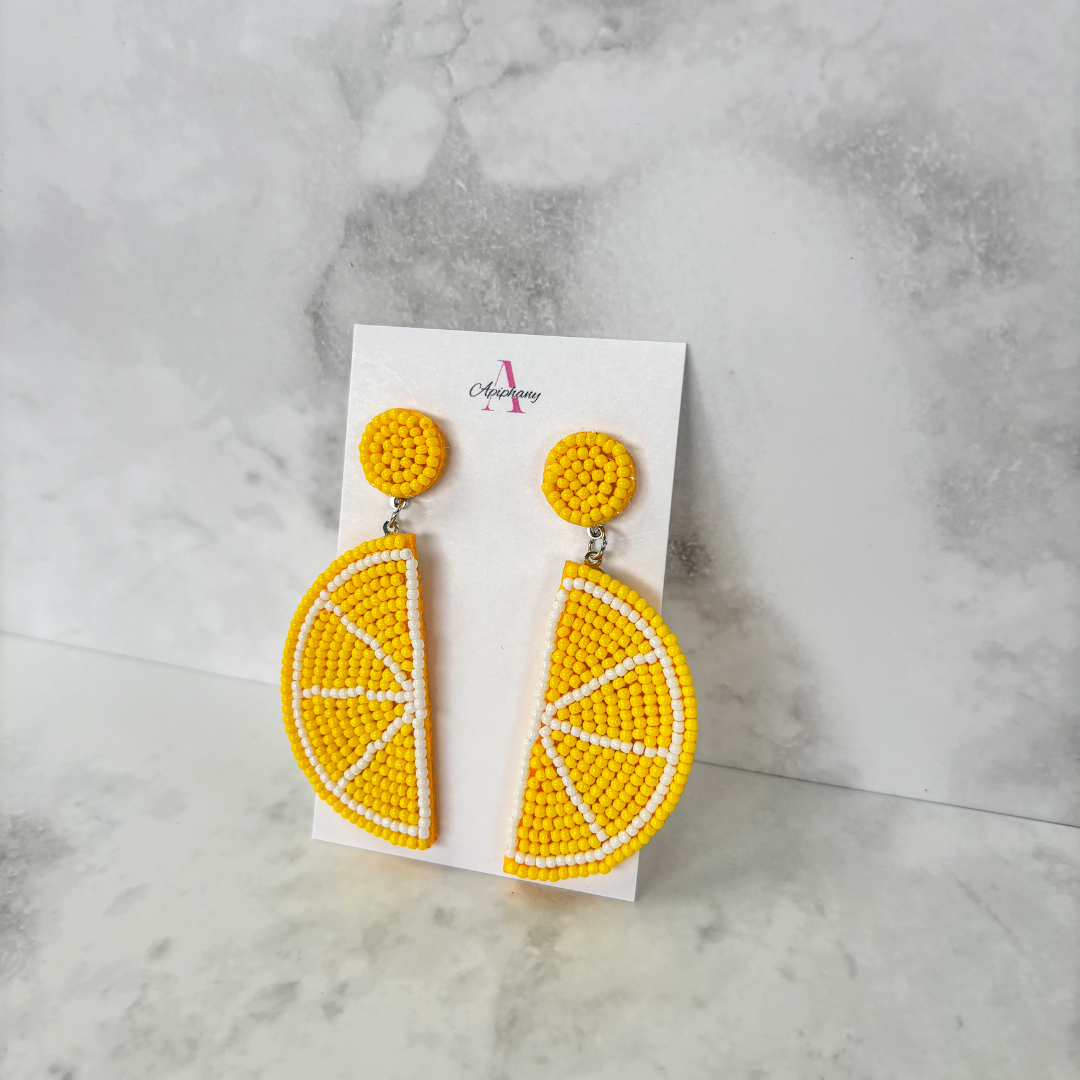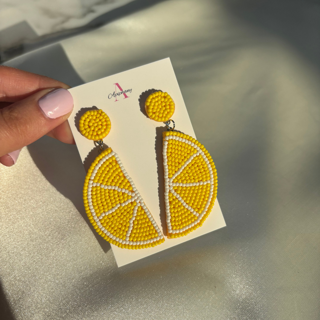 Beaded Lemon slice earrings. Lightweight earrings perfect for summer holidays.