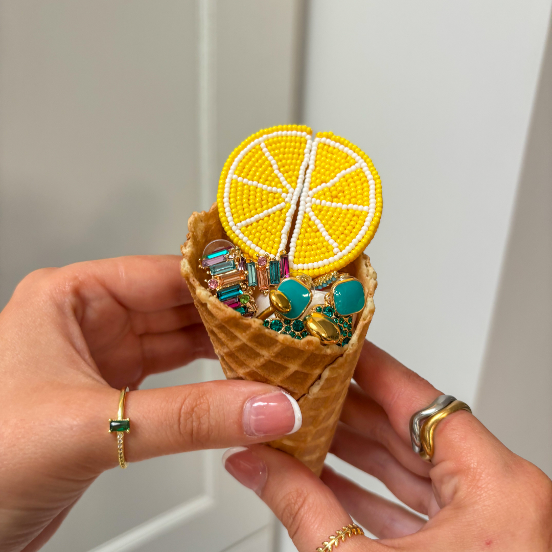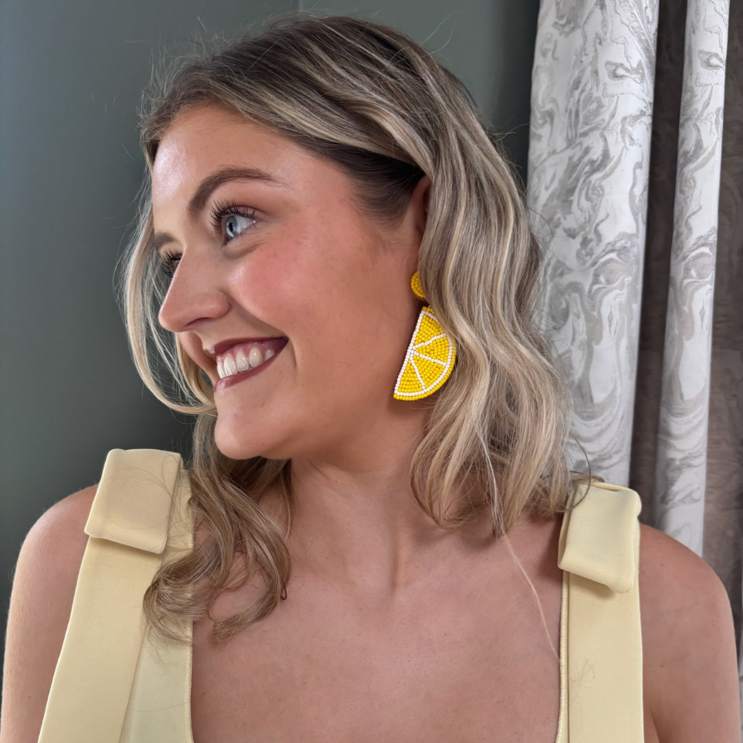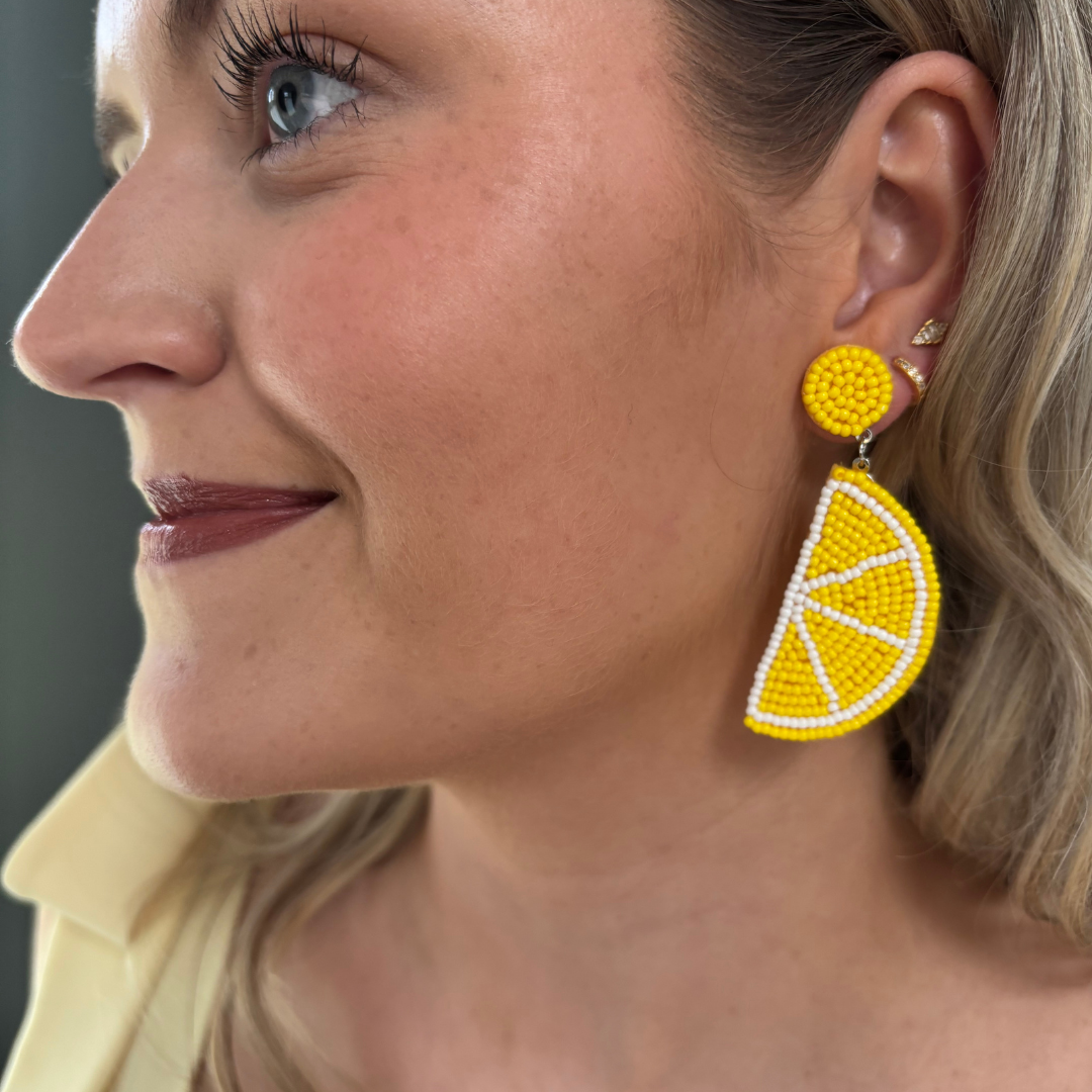 Beaded Lemon slice earrings. Lightweight earrings perfect for summer holidays.