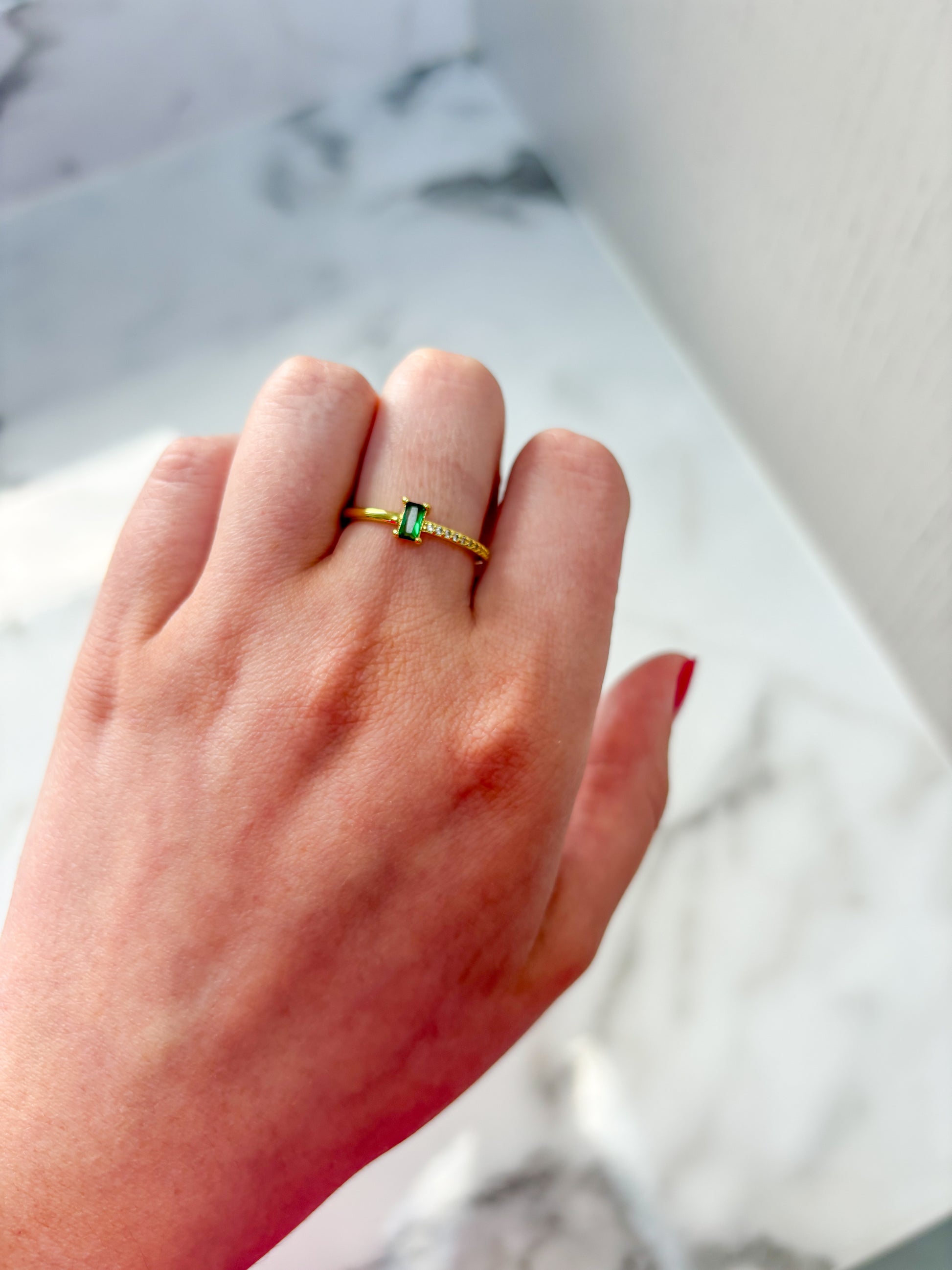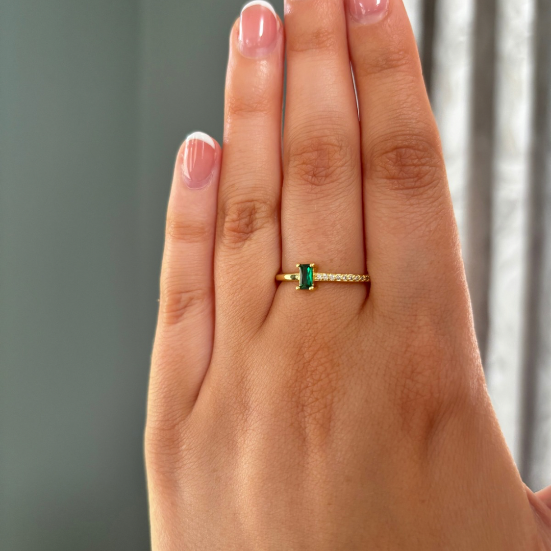 Emerald green adjustable ring