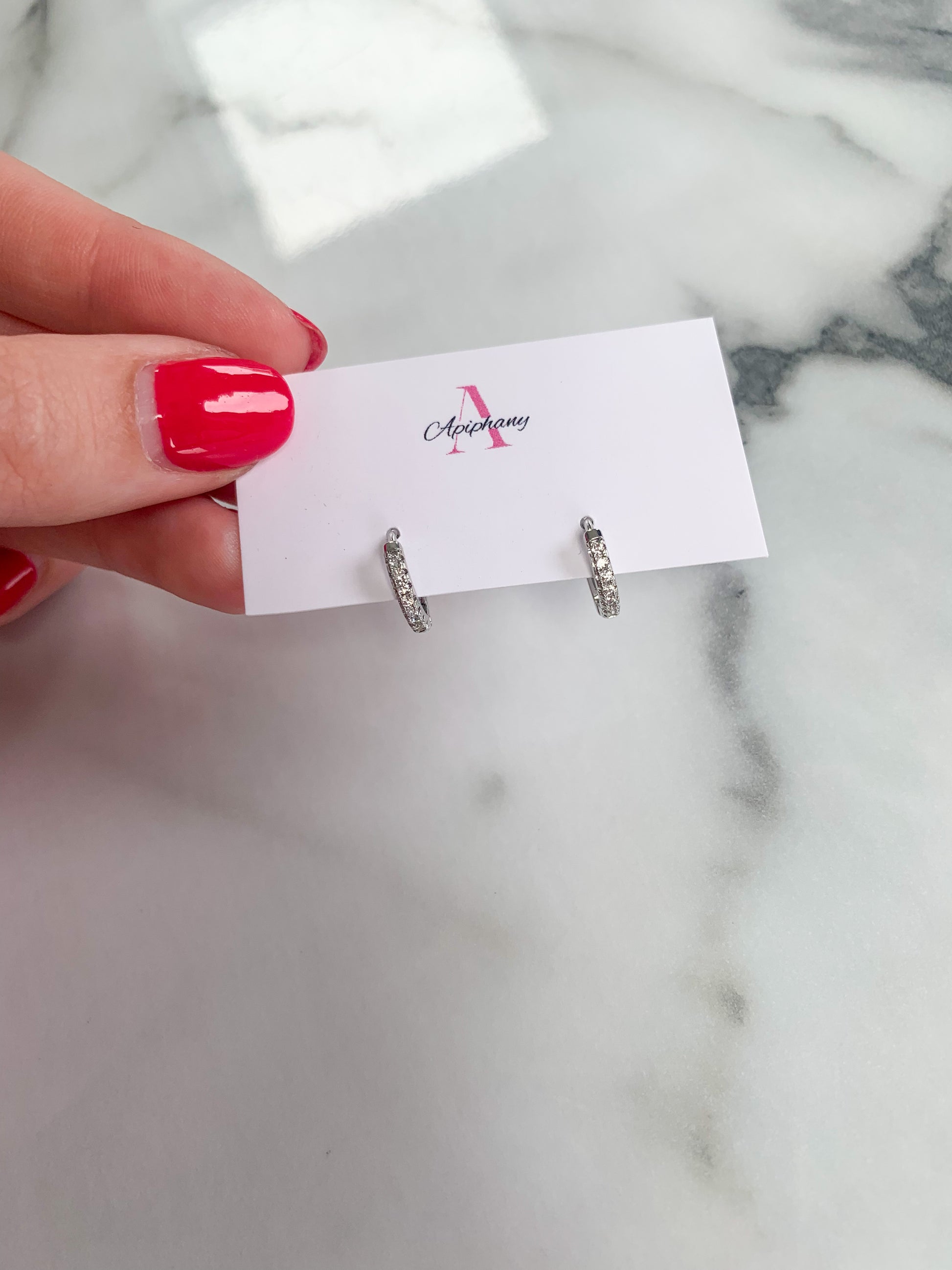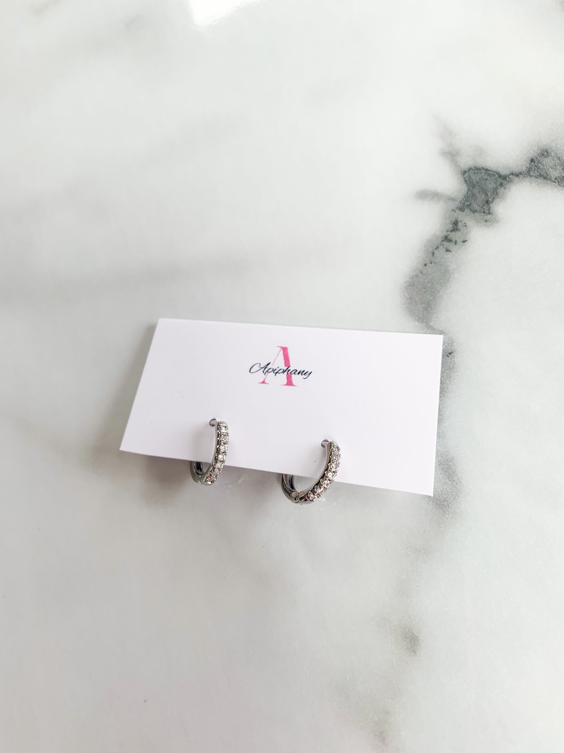 Small silver hoops with diamond detail