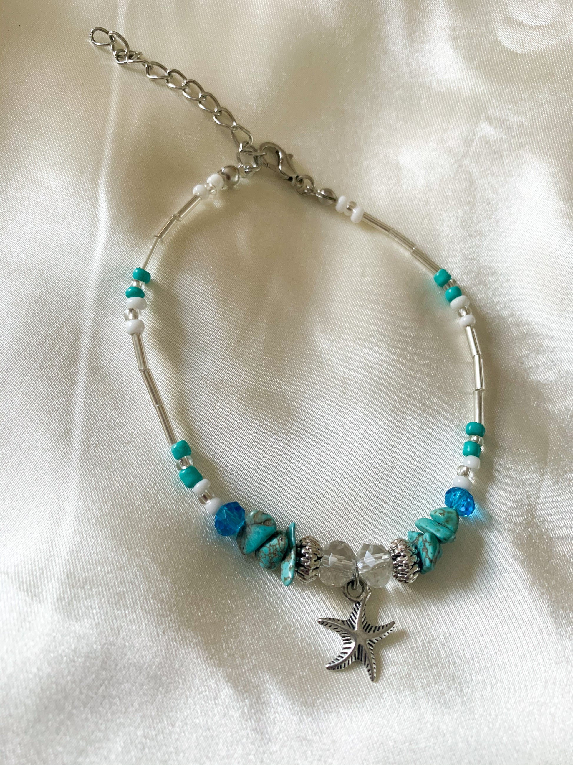 Anklet with blue beads and starfish charm